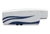 Designer Series UV Hydro RV Covers provides RV's with maximum protection against ultraviolet light and water. The new 4-layer fabric is tear resistant and has a hydrophobic, UV-resistant coating. New design Innovations include a 'red leading edge' to expedite cover installation by helping users quickly locate the front side, zippered panels to allow extension of slide-outs with the cover on, slip-seam wind channels to ensure a snug fit, includes 4 gutter spout covers to prevent damage from rainspouts. UV Hydro Covers have a three-year manufactures warranty.