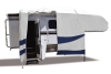 Designer Series UV Hydro RV Covers provides RV's with maximum protection against ultraviolet light and water. The new 4-layer fabric is tear resistant and has a hydrophobic, UV-resistant coating. New design Innovations include a 'red leading edge' to expedite cover installation by helping users quickly locate the front side, zippered panels to allow extension of slide-outs with the cover on, slip-seam wind channels to ensure a snug fit, includes 4 gutter spout covers to prevent damage from rainspouts. UV Hydro Covers have a three-year manufactures warranty.