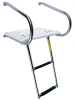 Two 1" diameter stainless wrap around rails. Durable HDPE platform is pre-drilled for easy assembly. Mounts at 10 degree angle on transom. Ladder steps telescope down easily. Ladder slides up and under platform for stowage. Flat poly treads for extra comfort. 18" W x 15.5" D X .75" Thick. Height above platform: 12.5". L deployed: 22.75", L Stowed: 17". Overall height: 5", W: 13.5".