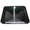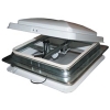Self centering metal base with radius corners. Interior garnish with wider 1-1/4" flange and radius corners. Rugged to withstand excessive wind and weather. Attractive - designed for good looks and lasting durability. Truly universal. Fits all existing R.O.'s. Covers all existing screw holes in roof. One piece seamless frame, deep drawn metal base. Covers all interior stains left by former garnish rings. Positive-seal weather stripping is leak resistant and water tight. Interchangeable with existing Ventline products. 14" x 14" - 1-1/4" W x 2-1/8". White garnish. 12V.