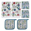 For all your indoor and outdoor cooking needs, the Lippert road sign kitchen towel and potholder set has you covered. Matching 6-piece set with two kitchen towels, two dish cloths and two potholders. Unique road trip design. Perfect for washing dishes and cleaning up spills. Potholders can withstand temperatures up to 400 degrees F. Machine washable. Makes a great gift for any camper or RVer.