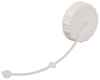 Cap has a tab style, non-threaded type twist lock to assure a good seal to your water fill. Strap is heavy duty plastic which holds up to the UV rays and weather better than most rubber styles.